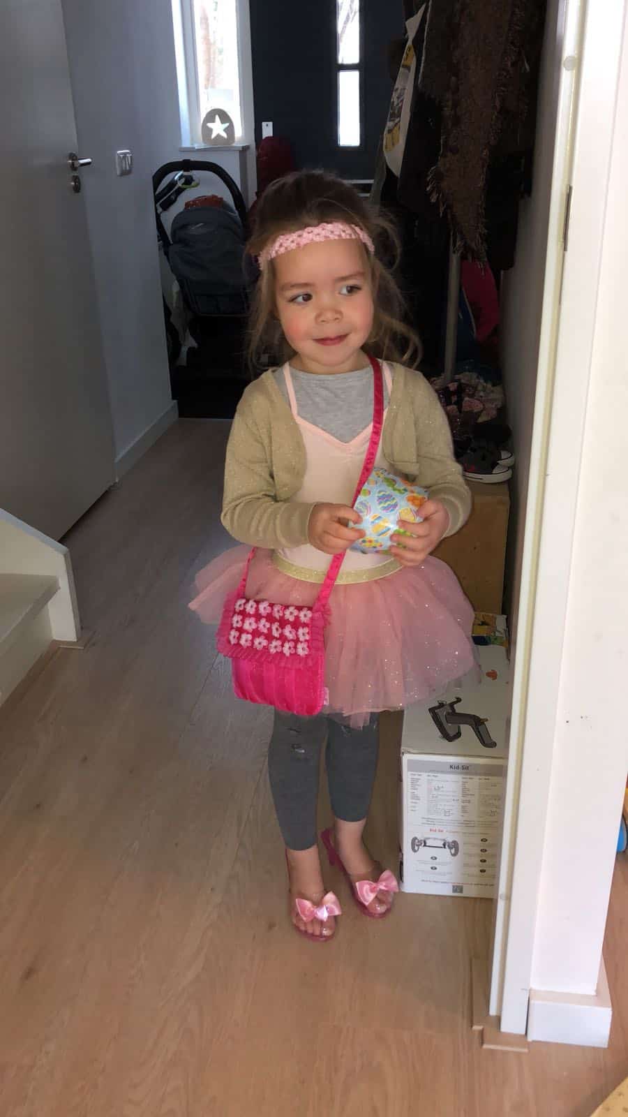 How little did i know…. Mijn dochter van 4 heeft nogal een sterke eigen menig. En vooral als het gaat om kleding. Ik hul haar het liefst in een leuke zwart witte legging met een jeansjurk. Maar nee! Nee! Zwart en wit?! Saai! Denim?! Voor jongens! Mijn dochter ziet er dus uit als Dame Edna meets Eddy uit Absolutely Fabulous. Ze combineert een bontbodywarmer met een roze tutu, gecombineerd met een blauw shirt met superhelden. Een grote glitterstrik in heur haar, een groene panterlegging, haar rood wit gestipte regenlaarzen en ze is klaar om te gaan. Hello Kitty handtas en ananaszonnebril maken deze fashion statement af. Het liefst ‘maakt ze zich ook op’. Liever niet. De laatste keer dat ik haar tóch even liet gaan, had ze een roze en een blauwe wenkbrauw. Dus dat make up doosje is ‘kwijt’.