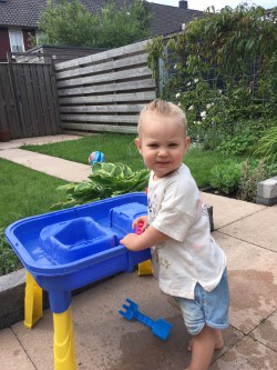 2. Maak je niet te druk om welk speelgoed het beste voor je kind is. Jackie heeft de spanningsboog van een goudvis en er was een periode waarin ik dacht dat dat kwam omdat ik niet het juiste speelgoed voor haar had. Terwijl er op de verpakking stond “Gegarandeerd uren speelplezier”. Trap daar sowieso nooit in! Zoiets bestaat niet! De enige momenten waarop het lijkt dat Jackie iets fantastisch heeft gevonden om zich langer dan 2 minuten mee te vermaken, is dat met iets wat kapot kan/gevaarlijk is/veel geld heeft gekost. Oftewel: alles behalve speelgoed!! Als ik op bezoek ging bij iemand, laadde ik eerst altijd mijn tas vol met de halve Intertoys, om vervolgens op de plaats van bestemming alles weer uit te stallen en om uiteindelijk al het speelgoed weer onaangeroerd terug te gooien. Want madame had zich uitstekend vermaakt met onderzetters of met uitproberen hoe je in korte tijd zo vaak mogelijk over een drempel heen en weer kan stappen. Als je dan toch per se een speelgoedtip van me verlangt: een watertafel! Ook al heb je geen tuin, zet hem dan op het balkon, “gegarandeerd minstens 7 minuten speelplezier”.