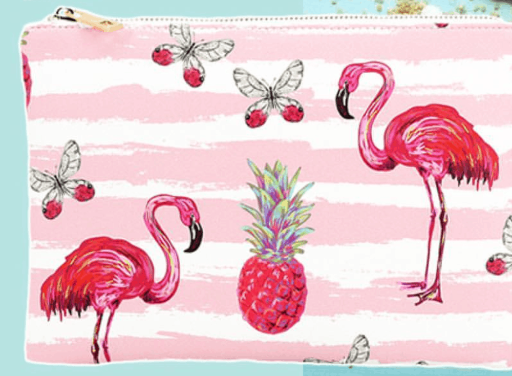 Heerlijk makeuptasje met bijpassende spiegeltje van NOUKA. Zo kan je er hip uitzien op het strand.