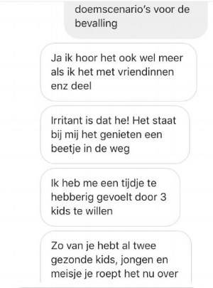 En dat was het moment waarop ik me realiseerde dat ik hier een blog over moest schrijven. Hierboven lees je fragmenten van een Whats App gesprek tussen mij en een vriendin die, net als ik, in haar allerlaatste periode van haar zwangerschap zit. Blijkbaar hoort daar voor sommige ladies dit doemdenken bij. Want weer een andere hoogzwangere vriendin sprak laatst uit dat ze angstaanvallen had over hoe het haar straks zou afgaan met twee kids en zwangere vriendin nummer drie was bang dat haar contract op het werk niet zou worden verlengd nu ze in verwachting was.