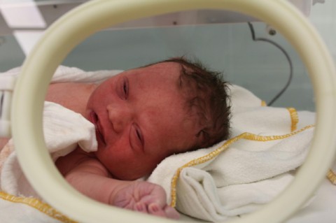 Om 13.00 uur heb ik dan eindelijk 8 cm ontsluiting en breken mijn vliezen. Op dat moment keken er vijf mensen mee en die waren allemaal kletsnat. LOL! Om 15.00 uur mag ik gaan persen, correctie “moet”. Ik hou het niet meer. Ik weet niet meer waar ik het zoeken moet. Achteraf heb ik er ook bijna niks van mee gekregen. Elke anderhalve minuut was er weer een perswee. Staan, zitten, liggen, ik wist van voren niet meer dat ik van achteren nog leefde. Ik had die nacht natuurlijk ook al niet meer geslapen. Na twee uur persen kan ik niet meer en roep ik dat ik een keizersnede eis. Op dat moment wilde de gynaecoloog dat ook voorstellen. Ik kreeg meteen weeënremmers en wat voelde dat hemels. Ik werd klaar gemaakt voor de OK en trilde als een rietje. Ik haat injecties, operaties en over het algemeen ziekenhuizen. Maar op was ik. Ik kreeg een ruggenprik en ging heerlijk liggen. Rust voor het eerst in bijna 20 uur. Op maandag 26 maart om 17.28 uur werd onze babyboy Ezra geboren. Ik hoorde alleen niets. Het bleek dat hij wat vruchtwater had ingeslikt, maar na een korte check hoorde ik hem eindelijk huilen. Jemig, wat is dat gevoel onbeschrijfelijk! Ik moest huilen, lachen, alles tegelijk. Eindelijk voelde ik zijn gezicht tegen mijn wang, hij begon meteen aan mij te sabbelen, zo schattig. Helaas moest hij meteen naar de kinderafdeling om onderzocht te worden in verband met verdenking op Downsyndroom (lees hier mijn andere interview).