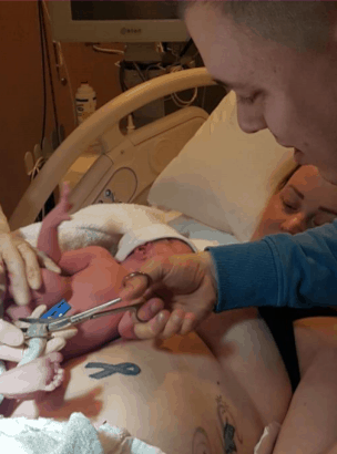 Voor mij één van de mooiste momenten van mijn leven, eindelijk mijn schat verlost van al haar angst, pijn en lange wachten, en voor je ligt je eigen kleine kindje compleet met alles wat er op en aan hoort te zitten. Zelf mocht ik de navelstreng doorknippen en na een klein half uur kwam de placenta er ook uit.