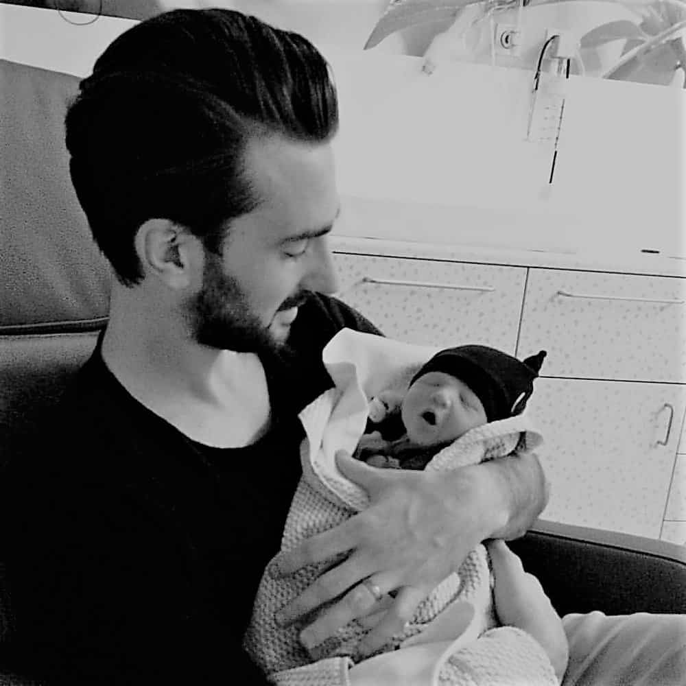 Er werd niet alleen een baby geboren, maar ook een nieuwe mama en papa. Met de tranen in mijn ogen zag ik voor het eerst het mooiste kindje van de wereld op de borst van mijn vrouw liggen. Wat was ik onwijs trots op haar en wat had ze het super goed gedaan. “Wow, ik ben vader”. Eindelijk daar ben je vriendje en wat voelde ik mij ontzettend trots op mijn vrouw! Nadat zoonlief een hele tijd op mama’s borst had gelegen, hield ik voor de eerste keer mijn zoon vast. Wat ik toen dacht is niet in woorden te beschrijven. Kippenvel, als ik er aan terug denk. Om 13:55 uur reden wij naar het geboortehuis en om 15:43 uur werd onze zoon geboren. Een geweldige, intense dag met bijzondere herinneringen, waarvan de blauwe plekken op mijn rug nog lang een lijflijk bewijs bleven.