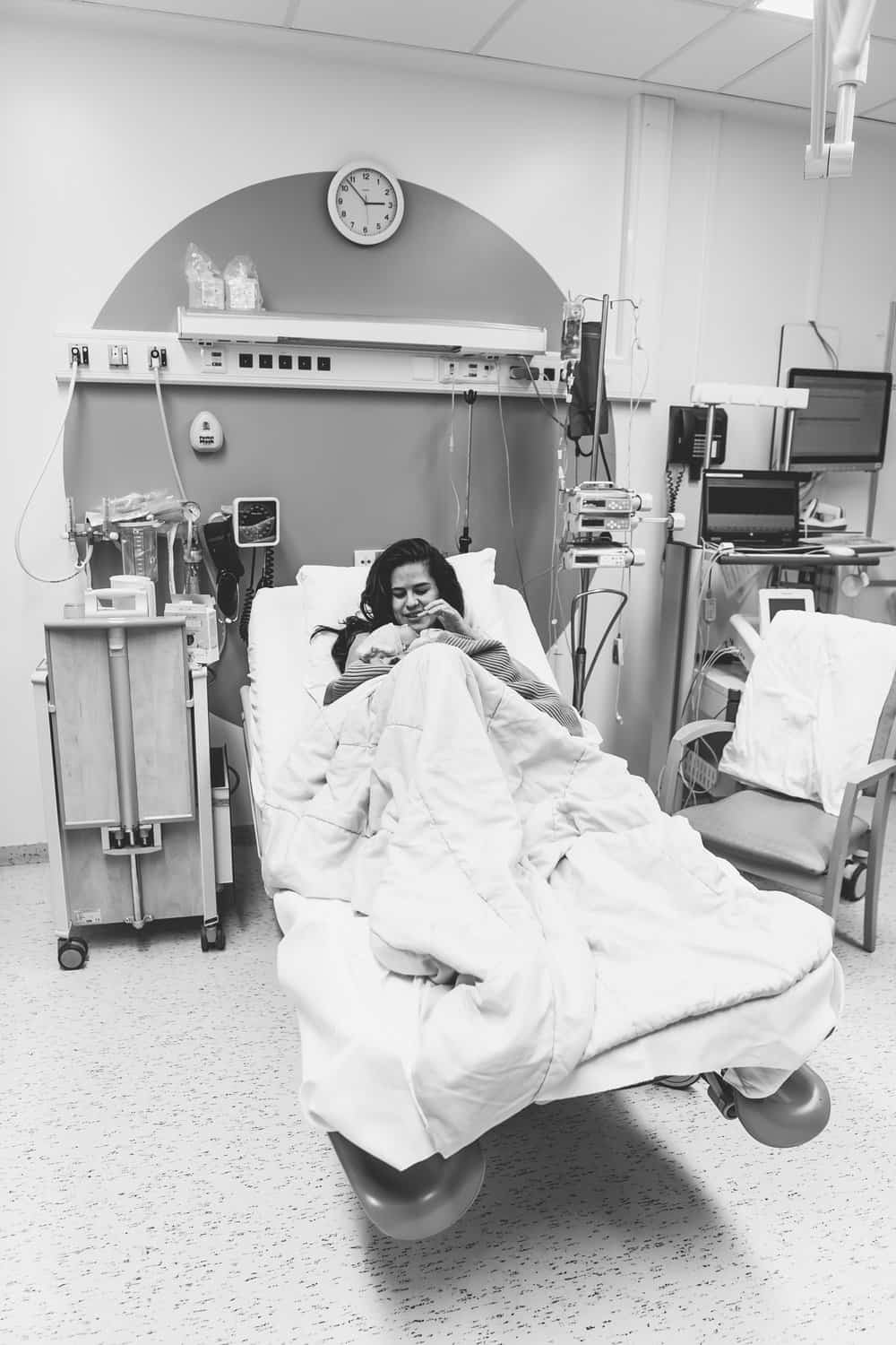 Ik krijg nog steeds tranen in mijn ogen als ik mijn bevallingsverhaal vertel. Het moment dat Isabella op mijn borst werd gelegd is het mooiste moment uit mijn leven. Het is zo magisch en onwerkelijk dat je gewoon uit liefde een eigen kindje kan creëren in je buik. Isabel huilde niet en keek meteen heel scherp de wereld in. Ik was voorheen weleens bang dat ik mij misschien niet meteen moeder zou voelen. Nou, het was wel echt meteen liefde op het eerste gezicht en ik voelde mij meteen haar moeder! De dagen erna moest ik constant huilen van geluk. De kraamweek was pijnlijk en zwaar door gebrek aan slaap, maar de enorme alomvattende liefde sleepte mij er doorheen. De fotograaf was helaas te laat om de bevalling vast te leggen doordat ik binnen twee uur ben bevallen, gelukkig was ze wel op tijd om het magische moment erna in het ziekenhuis voor ons op foto te leggen. Deze foto’s zijn nu zo dierbaar!