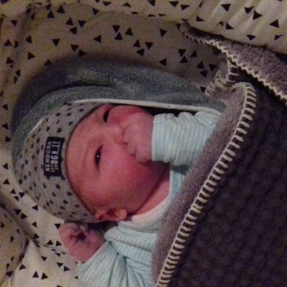 Ik zit volledig in mijn bubbel en lig op bed rustig de weeën weg te puffen. Om 07.30uu komt Annet binnen. Het is kalm in de kamer en er staat alleen een klein lampje aan. Olov en Annet gaan aan de slag om het bevalbad klaar te maken. Ook voor deze keer heb ik voor een bevalbad gekozen. Wanneer het bad klaar staat wil ik er niet in. Ik lig heerlijk in het bed en puf rustig de weeën weg. Ik vraag Annet of ze wil kijken hoeveel ontsluiting ik heb. Ik ben wel teleurgesteld wanneer ze 4 centimeter zegt. Maar ik blijf liggen en rustig wegpuffen. De weeën worden iets minder sterk en Annet raadt me aan om op de andere zij te liggen. Dit heeft gelijk effect. Maar na een half uurtje worden de weeën wat minder krachtig. Op advies van Annet ga ik even uit bed en probeer om even de kamer door te lopen. Zodra ik sta, kom ik niet verder dan het voeteneind. De weeën zijn sterker en komen sneller achter elkaar. “De vliezen zullen zo wel breken”, zegt Annet, “die houden het nu nog een beetje tegen”. Bij een volgende wee voel ik dat de baby verder wil dalen, maar wordt tegengehouden. Dit moeten de vliezen wel zijn. Ik vraag aan Annet of ze de vliezen wil breken. “Wanneer je weer op bed wilt liggen en als ze nog niet uit zichzelf gebroken zijn, dan breek ik ze”, antwoordt Annet. Ik blijf nog een kwartiertje zo staan wiegen en weeën wegpuffen. Ik wil weer liggen. Zodra ik lig, vraag ik aan Annet of ze mijn ontsluiting wil checken. Bij Grady bleef ik zo lang op 7 centimeter hangen en ik ben toch een beetje angstig dat dit weer gaat gebeuren. Annet checkt en komt met het verlossende antwoord van 8 centimeter, haleluja, bijna bij de tien! Annet prikt de vliezen door. Ik merk het gelijk aan mijn weeën. Ze duren langer en zijn zoveel krachtiger. Op dat moment komt de kraamhulp binnen lopen. Ze begint te kletsen en veel vragen te stellen. Ik kan me niet inhouden en vraag of ze alsjebliect haar snufferd wil houden, want ze irriteert me. Geen idee hoe ze reageert, want ik kom weer in mijn bubbel. Na een kwartiertje vraagt Annet of ik al mee wil duwen. Blijkbaar merkt ze dat het nu toch echt gaat gebeuren. Zodra ze het vraagt, ben ik met een wee aan het meeduwen. Olov heeft geen idee wat er gebeurt en vraagt wat Annet bedoelt. “Zet de verwarming maar wat hoger. De baby komt zo”, zegt ze. Wanneer Olov dit hoort, begint hij me aan te moedigen. Hij vertelt me dat ik het super doe en dat we bijna de baby vast kunnen houden. Wanneer ik denk dat dit me echt niet gaat lukken zegt Annet: “Nog maar één keer persen Chantal! Het hoofdje staat!” Dit geeft me zo’n kracht dat ik met alles wat ik in me heb pers. En dan wordt 4 mei 2019 om 11.58uu Ethan Evelyn Ray geboren.