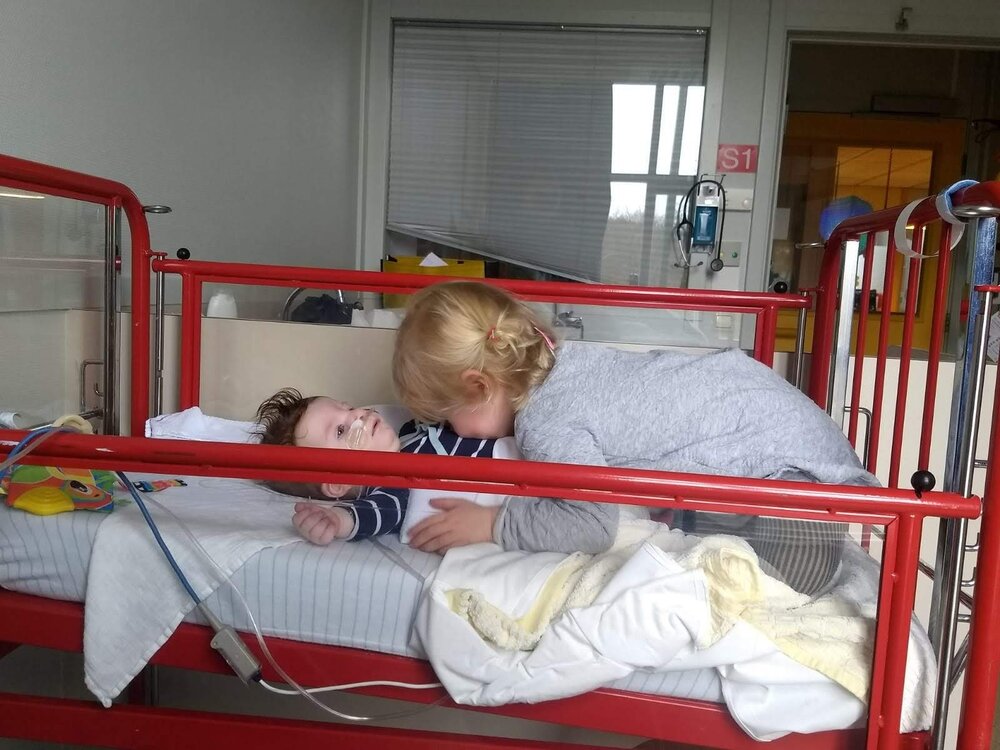 In bijna twee jaar tijd hebben we zo’n 12 lange tijden in het ziekenhuis gelegen met Nout. Elke luchtweginfectie of virus kennen we inmiddels wel. Nout kan niet slapen zonder zuurstof en is afhankelijk van sondevoeding. Soms spuugt hij vijf keer per dag. Nout heeft een slappe spierspanning. Zitten kan hij nog niet, maar rollen als de beste. Iedere avond breng ik Nout naar bed. Ik doe dan zijn sensor om de voet, de monitor aan en zuurstof in zijn neus. Dit is voor ons nu routine, maar als zijn monitor gaat piepen, ben ik elke nacht weer bang. Ik ben bang om hem kwijt te raken. Vroeger durfde ik vaak niet er naar toe, omdat ik bang was wat ik aantrof. Elke dag word ik geconfronteerd met de droom die we ooit hadden: genieten met elkaar en met de kinderen. Het zwembad, een speeltuin of boederijtje doen we weleens, maar vaak zonder Nout. Deze beslissingen zijn moeilijk en doet elke minuut van de dag pijn. Elke dag dat ik Fenne naar de opvang breng en ik andere ouders met hun kinderen zie, doet het pijn. Broertjes en zusjes die met elkaar spelen, dat was ook ooit mijn droom. Elke dag zie ik hem vechten, wil hij nieuwe dingen doen. Er zijn zoveel dingen die hij moet laten. Die we als gezin moeten laten.