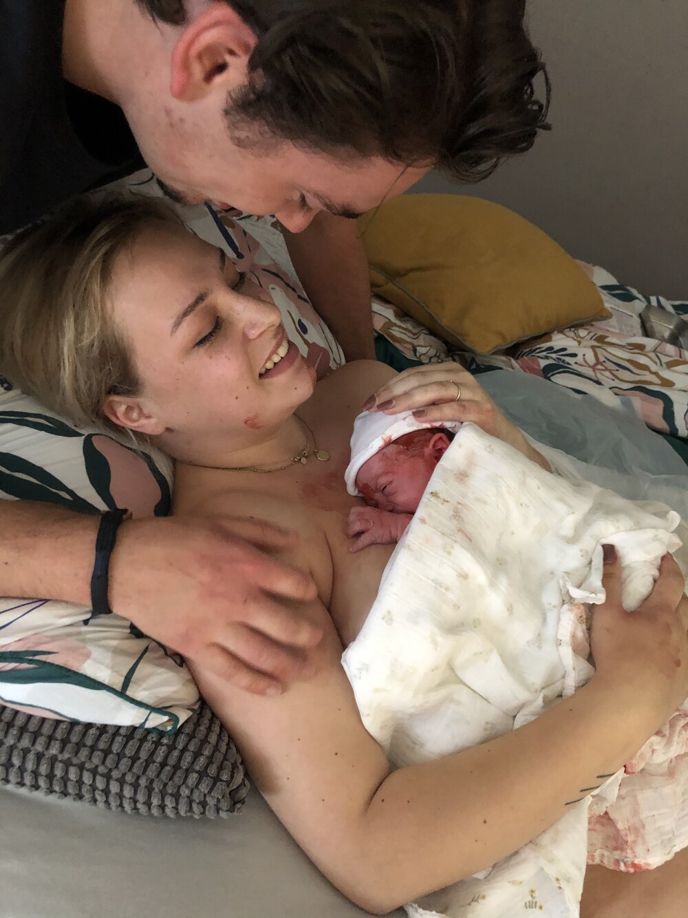 In het ziekenhuis hebben ze weer manueel geprobeerd de placenta los te krijgen. Op dat moment hield ik het niet meer. Ik schreeuwde dat ze van me af moesten blijven en ik eiste dat de OK werd klaargemaakt. Ik werk zelf in het ziekenhuis, dus ik weet hoe rap dat kan worden gedaan. Ik werd niet serieus genomen. Ik dacht dat ik het niet meer hield van de woede. Ik wilde mijn gezin: mijn dochter en vriend. Ik wilde die rotplacenta eruit en ik wilde niet meer dat mensen met twee man sterk op mijn buik gingen duwen. Ik wilde die operatie, en ik wilde die nu. Op het moment dat mijn vriend en Aimée (eindelijk) aankwamen, werd ik direct doorgereden voor OK. Ik heb Aimée nog heel even vastgehad, maar ik was zo misselijk van de pijn dat ze net zo hard weer werd weggehaald, omdat ze bang waren dat ik over haar heen zou spugen.