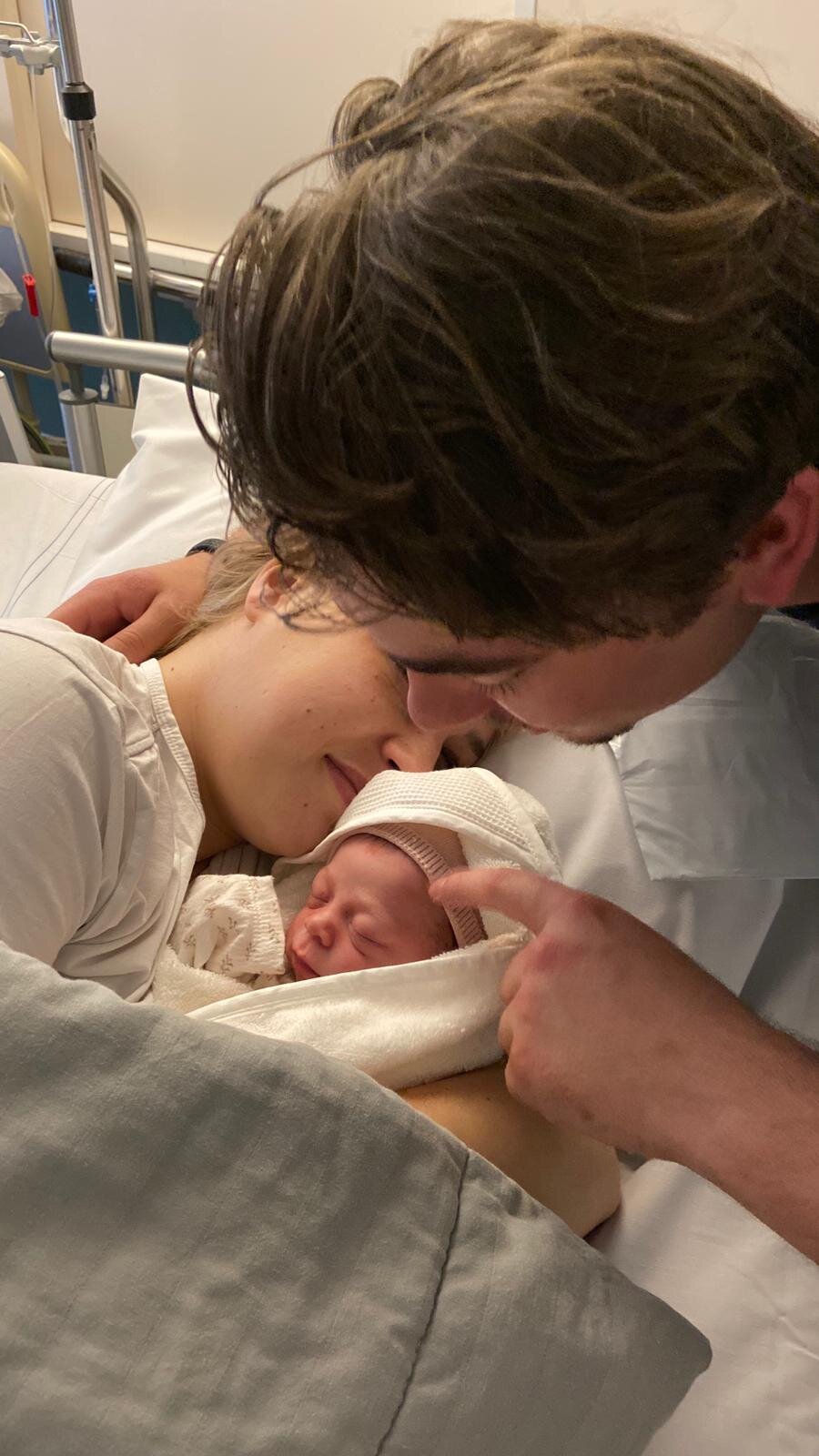 Al met al kwam ik rond 22:00 uur weer terug op de kamer en had ik toen pas de kans om mijn dochter goed vast te houden. Ze is om 19:00 uur geboren, dus zeker drie uur na de geboorte heb ik haar pas écht vast kunnen houden. Ze was heel licht en klein en er werd nog getwijfeld of ze in de couveuse moest of niet. Gelukkig was dit niet nodig en mochten we de volgende ochtend naar huis. Inmiddels is ze ruim vier maanden oud en is ze nog steeds klein (ze past nog steeds in maatje 62), maar doet ze het erg goed!