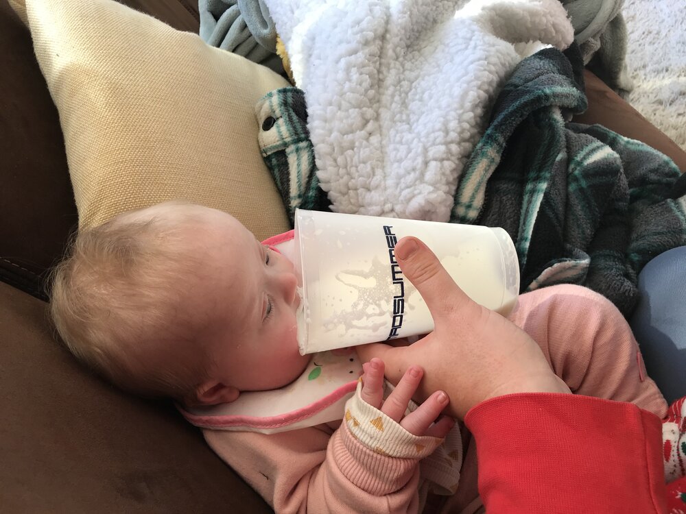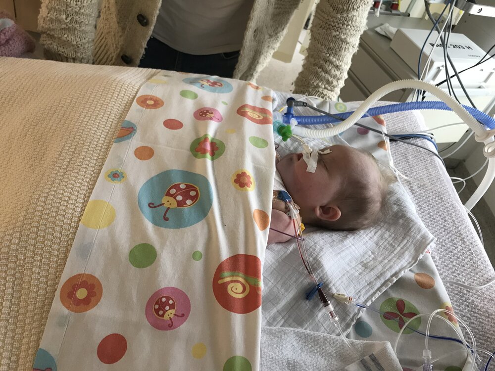 Op 9 september is ze geopereerd aan haar hartje. Weer kregen we het machteloze gevoel. Je kleine meisje afgeven in een grote operatiekamer waar verschillende mensen in blauwe pakjes staan te wachten, is heftig. Ze stonden te wachten totdat ik mijn kindje op de tafel legde en ze haar in slaap konden brengen. Met tranen over mijn wangen liepen Daniël en ik de OK af. Vreselijk om haar daar achter te laten. Ondanks de tranen voelde het goed. Ze was in goede handen en echt aan de operatie toe. De laatste weken was ze heel snel en vaak moe en kon ze weinig tot helemaal niet meer zelf drinken. Het enige wat we met haar konden doen was lekker knuffelen. De rest kostte haar zoveel energie en dat had ze gewoon niet meer. We hadden medelijden met haar. Er was niets dat we voor haar konden doen. De operatie was op woensdag snel gelukt (gelukkig!) en alles was goed. Haar hartje zag er zelfs nog beter uit dan dat ze dachten! Vrijdag mocht ze van de IC af en zondag mochten we alweer naar huis. Niet te geloven hoe snel alles is gegaan. Thuis moesten we natuurlijk nog rustig aan doen. Ze mocht 6 weken niet op haar buik, omdat haar borstbeen moest genezen. Ook heeft ze nog een poosje de sonde gehad. Ze was namelijk vergeten hoe ze uit de fles moest drinken. Na veel oefenen samen met de logopediste, is het ook niet meer gelukt. In plaats van de fles, drinkt deze dame al uit een beker. Zelf vind ik dit zo gaaf! Zo’n klein meisje en dan al uit een beker drinken, hahaha. Het is een geweldig gezicht.