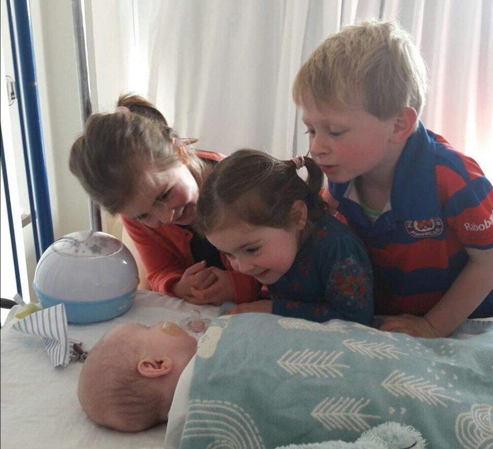 Het was heel moeilijk om al die verschillende artsen en verpleging aan Youps bed te zien. Hij was immers pas 3 maanden. We zouden nog moeten beginnen met een eerste hapje en nu lag hij met een katheterzak van 2 liter aan zijn voeten, een sondeapparaat bij zijn hoofd, en verband op de plek van zijn portacath in zijn borst. Die dagen stonden in het teken van allemaal eerste keren, alleen niet die keren waar je “mile-stone” kaarten voor kon gebruiken. Ik moest direct stoppen met borstvoeding, omdat Youp niet meer aan hapte. Zijn voeding moest langzaam op een continue stand toegediend worden om overgeven te minimaliseren. De eerste chemo werd toegediend. Ray en ik stonden er stil bij en keken. “Hoe konden we dit laten gebeuren: dit gif in dat kleine lijfje?” Tegelijk wisten we dat dit het enige was wat hem kon helpen. We spraken met een maatschappelijk werker om uitleg te krijgen over diverse ondersteunende trajecten. We kregen een vaste verpleegkundige die ons introduceerde in het behandelplan en uitleg gaf over de verschillende chemo’s die in de eerste chemo cocktail zaten en welke bijwerkingen deze hadden. We kregen uitleg over het aanbrengen en wisselen van de sonde, het aanprikken van de port a cath, de diverse onderzoeken die zouden volgen en de risico’s van koorts en infecties. We spraken met de huisarts voor extra ondersteuning. Er werd een kinderthuiszorgbureau geregeld voor ondersteuning met Youp als we thuis zouden zijn. We leerden Youp verzorgen en medicijnen toedienen. Ook kregen we een pedagogische medewerker toegewezen. Want in die eerste week moest ik één van de moeilijkste gesprekken voeren. Ik moest Bram vertellen dat zijn broertje ziek was, heel ziek. Tot die tijd hadden we Bram globaal verteld dat er wat bij Youp was gezien, wat de artsen in de gaten wilden houden. We wisten immers nog helemaal niet dat dit zo verder zou verlopen. We spraken met de pedagogisch medewerker om haar om tips te vragen om dit op de juiste manier te doen, om dit zware nieuws zo goed mogelijk te brengen. Op de eerste vrijdag haalde Ray Bram uit school. Ik had die nacht niet geslapen. Ik was misselijk van angst, want nu moest ik mijn andere kind zo veel verdriet doen. Ik had al gefaald om Youp te beschermen, want kanker, dat kreeg je toch van iets? En nu zou ik Bram dit verdriet niet kunnen onthouden. Maar door de adviezen van de pm’er wisten we de juiste woorden te vinden, wist ik de moed te verzamelen om het gesprek aan te gaan. Bram nam het gesprek zo goed als mogelijk op, was bij vlagen verdrietig net als wij, maar probeerde ook gewoon verder te gaan.