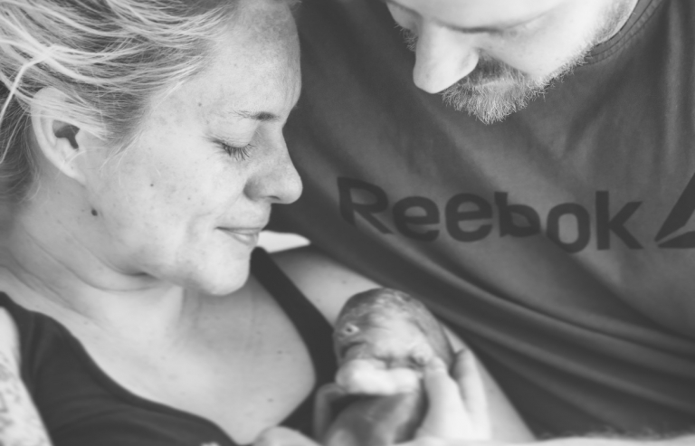 Na een aantal persweeën werd ons kleine meisje op mijn buik gelegd…