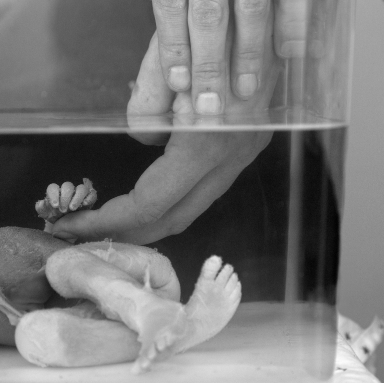 Om 00.50 uur komt ze binnen met een doppler en zet deze tegen mijn buik. Ik hoor een langzame hartslag (70bpm) en weet meteen: ‘Er is wat mis..’ In paniek kijkt ze me aan: ‘Bel 911!’ Mijn man zegt dat het sneller is als we er zelf heen rijden aangezien we dichtbij wonen. Ineens voel ik niks meer en denk alleen: ‘Ik moet mijn kind redden!’ Verdoofd sta ik op, loop de trap af en stap in de auto. Dat is waar de paniek toeslaat en ik alleen maar kan huilen: ‘Nee, alsjeblieft, nee, schiet op!’ Ik druk mijn handen tegen mijn buik om contact met haar te maken, maar voel alleen haar schokkende lijfje. Ik weet dat het te laat is, maar hou hoop. Om 01.00 uur ren ik overstuur de ER in, daar word ik opgevangen in een rolstoel en zeg: ‘Schiet op! Mijn baby gaat dood!’ Ik word naar een bed in een kamer gebracht waar er allerlei mensen rondrennen. Ik laat alles over me heen komen: infuus, katheter, hartslagmeters, echo’s etc. Ze kunnen geen hartslag vinden en de onmacht verstikt me. Ik voel haar dood gaan in mijn buik en er is niets dat ik kan doen om haar te redden.