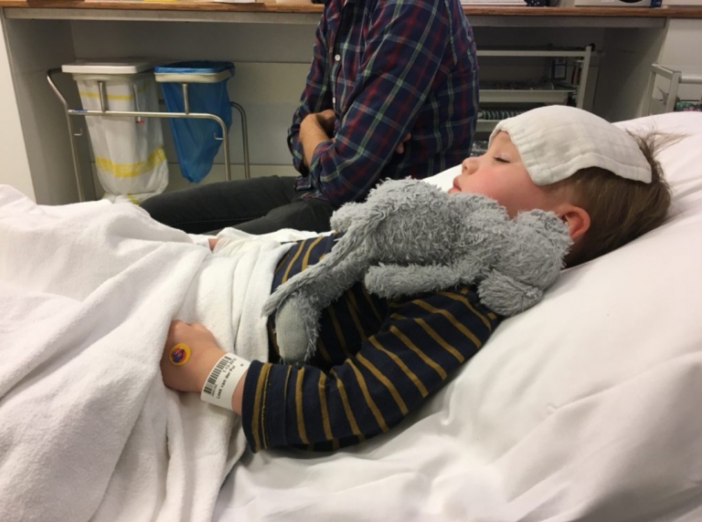 Ik neem je mee naar het begin van onze vreselijke achtebaan met onze peuter Loek! Onze zoon gaf vanaf halverwege 2018 aan dat hij af en toe hoofdpijn had. Dit gebeurde vaak nadat hij even boos is geweest. We denken dat hij zich veel te druk maakt en dus doen we dit af met; ‘drink maar een slokje water en doe maar even rustig’. Begin augustus komt zijn eerste hoofdpijnaanval. Tijdens het eten roept hij ‘out-of-the-blue’ met “auw, hoofdpijn, hoofdpijn”. Vervolgens is hij 20 minuten hard aan het huilen en lijkt hij enorme pijn te hebben. Hij strekt zijn nek en billen ver naar achteren in de vorm van een half maantje. Als we hem dan neerleggen op de bank en hem uiteindelijk rustig weten te krijgen valt hij direct in slaap. Dit verontrust ons enorm en we zijn er zeker van dat dit geen toneelspel is om niet meer te hoeven eten. We bellen de huisartsenpost maar krijgen het advies om de volgende ochtend de huisarts te bellen. De huisarts wil dat we het toch nog even aankijken en we maken een afspraak voor in september. Maar eind augustus zijn we het zat. Loek heeft twee a drie keer per dag hoofdpijnaanvallen, waarbij hij zijn lijfje volledig overstrekt, hij vraagt vijf a zes keer per dag om een washandje op zijn hoofd en is niet meer zichzelf. We besluiten de huisarts nogmaals op te bellen met het verzoek tot snellere actie. Na aandringen krijgen we het voor elkaar om twee dagen later een ‘spoedafspraak’ te krijgen bij de kinderarts.