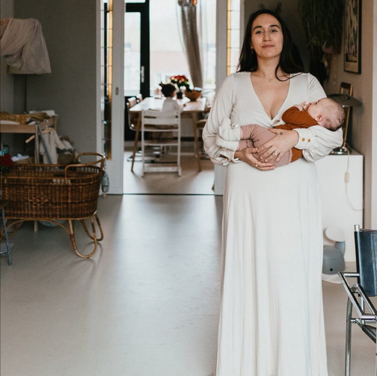 Hoe merkte je dat de bevalling begon en waar was dit?Een week voor mij uitgerekende datum stuurde ik s’ochtends een bericht aan mijn vriend ‘Zullen we vanavond uiteten gaan?’. Dit met het idee dat na de bevalling we een datenight voorlopig even konden vergeten. In de namiddag appte ik hem dat ik toch te moe was om uiteten te gaan en we kozen dus voor Deliveroo. Toen er werd aangebeld met ons eten, liep mijn vriend naar de deur en sprong ik op van de bank om wat drinken te halen in de keuken. Op dat moment braken mijn vliezen. Ik stond in de deuropening te wachten tot mijn vriend de voordeur sloot. Op dat moment was ik helemaal hyper, maar officieel was de bevalling nog niet gestart. Ik zocht het nog even voor de zekerheid op, maar het kon nog wel 24 uur duren voordat de weeën zouden starten. We wilden rustig eten en daarna de verloskundige bellen van Femme. Gelukkig bood de verloskundige aan om meteen even langs te komen. Ik verloor op dat moment iets te veel vruchtwater en moest naar het OLVG voor een dubbele check. Vanaf het moment dat we het ziekenhuis inkwamen, kreeg ik continue lichte krampen. Maar dat konden geen weeën zijn dacht ik; want het stopt niet. De krampen werden steeds heftiger, maar alsnog dacht ik tussen een wee moet pauze zijn en bij het OLVG Oost bevestigde zij ook niet of het een wee was of werd er gecontroleerd of ik al ontsluiting had. Na de echo waarbij werd gecheckt of het kindje goed was ingedaald werd ik naar huis gestuurd. Op dat moment is het ‘licht’ soort van uit gegaan, want de krampen waren toen heel pijnlijk. Thuis ben ik meteen huilend onder de douche gaan staan. Toen ik uit de douche kwam, vroeg ik mijn vriend om de verloskundige te bellen. Ik had nog nooit gehoord of gelezen dat je bevalling kon beginnen met een weenstorm die niet stopt.